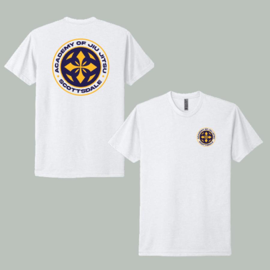 Show your Academy pride on and off the mats with our Academy of Jiu-Jitsu White Adult T-Shirt. This premium shirt is made by Next Level Apparel, a favorite brand known for its soft feel, modern fit, and everyday comfort.